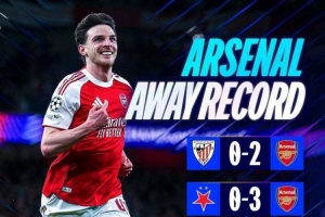 数据统计显示,阿森纳本赛季欧冠客场4胜1平,打进12球仅丢2球: