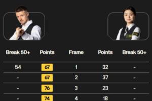 此外,白雨露也是本届世锦赛唯一晋级次轮的女子选手。她与迈克尔·霍尔特的第二阶段比赛将于北京时间明日21点30分开始。
